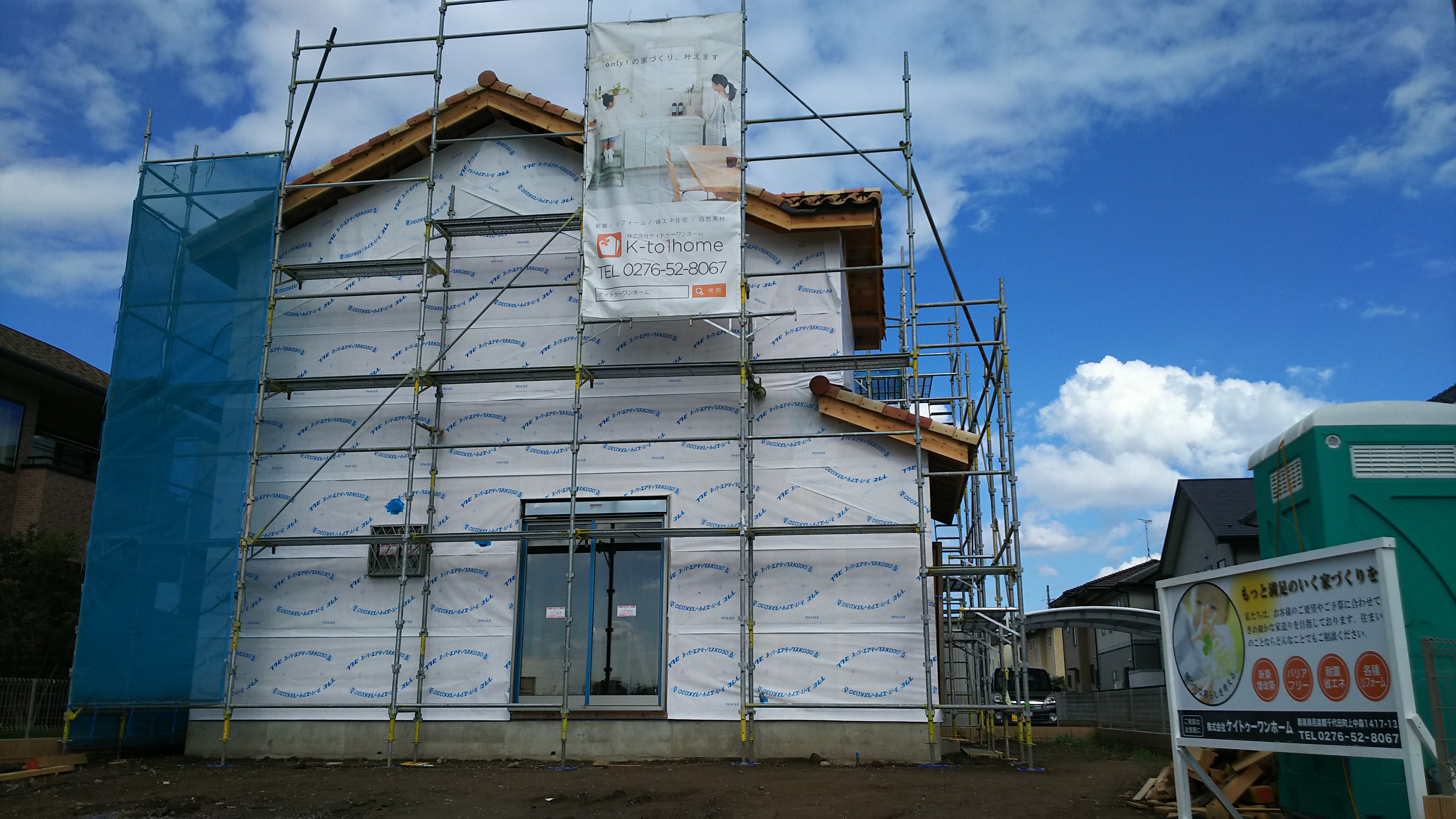 近況報告 2016.09.01お知らせ 建前してから10日が過ぎ、窓サッシが付き、防湿シートを家全体に貼りました。 2階のサッシはこれから取付け予定です。 DSC_0156 Tweet Share Pocket RSS feedly お知らせ 新築住宅上棟しました 屋根工事完了しました。